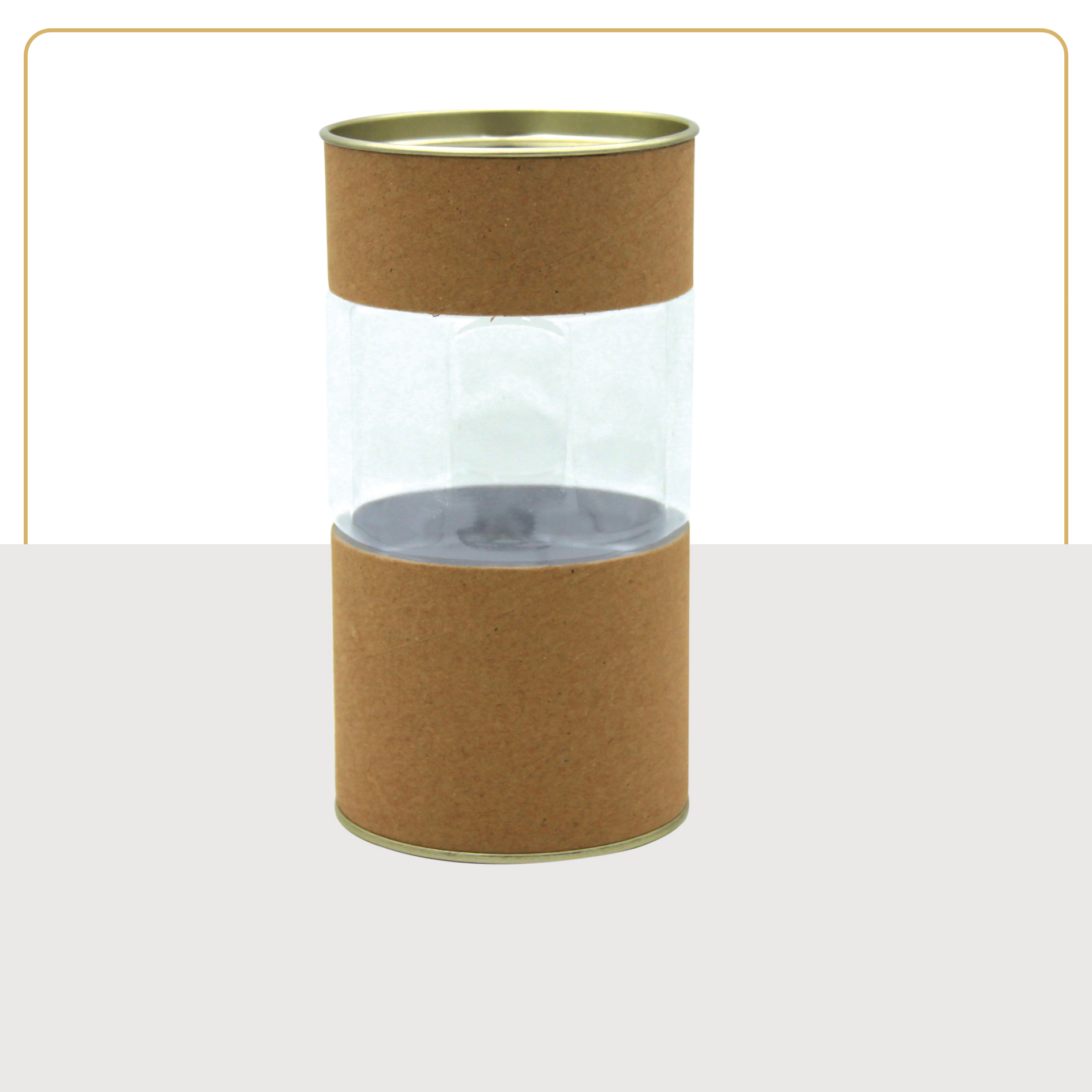 بدنه کرافت حس طبیعی و سبک دستساز را به محصول میدهد و بخش شفاف (ویترین) باعث میشود محتوای داخل قوطی دیده شده و جلوه آن بیشتر شود؛ این ویژگی بهخصوص برای فروشگاههایی که به نمایش محصول اهمیت میدهند بسیار ارزشمند است.